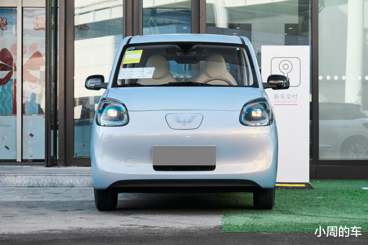 首先外观方面,五菱宏光MINI EV四门版一改现款车型方方正正的设计,车头部分的引擎盖向下有着圆润的过度,搭配两侧玉米粒样式的大灯组,看起来颇为可爱,灯腔内部,新车还加入了双半环的日间行车灯,在白天也能具备不错的辨识度。